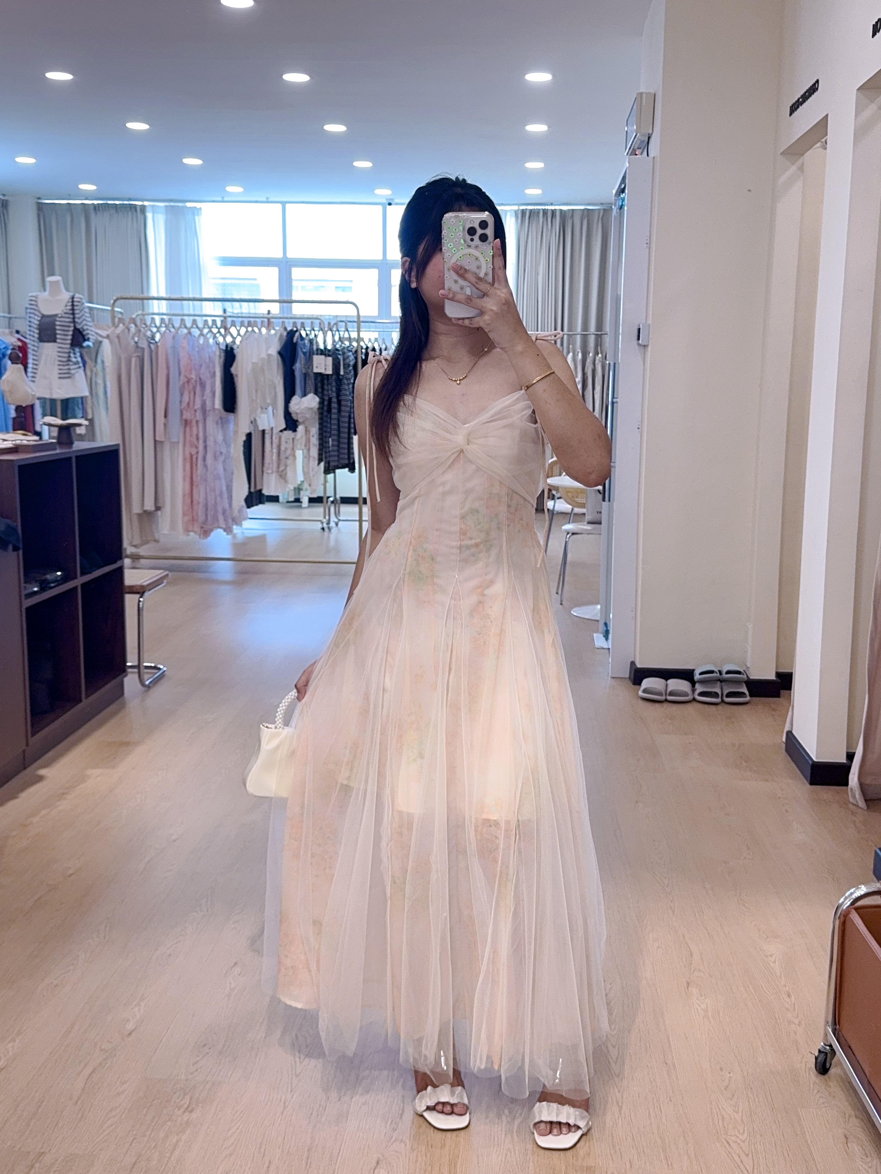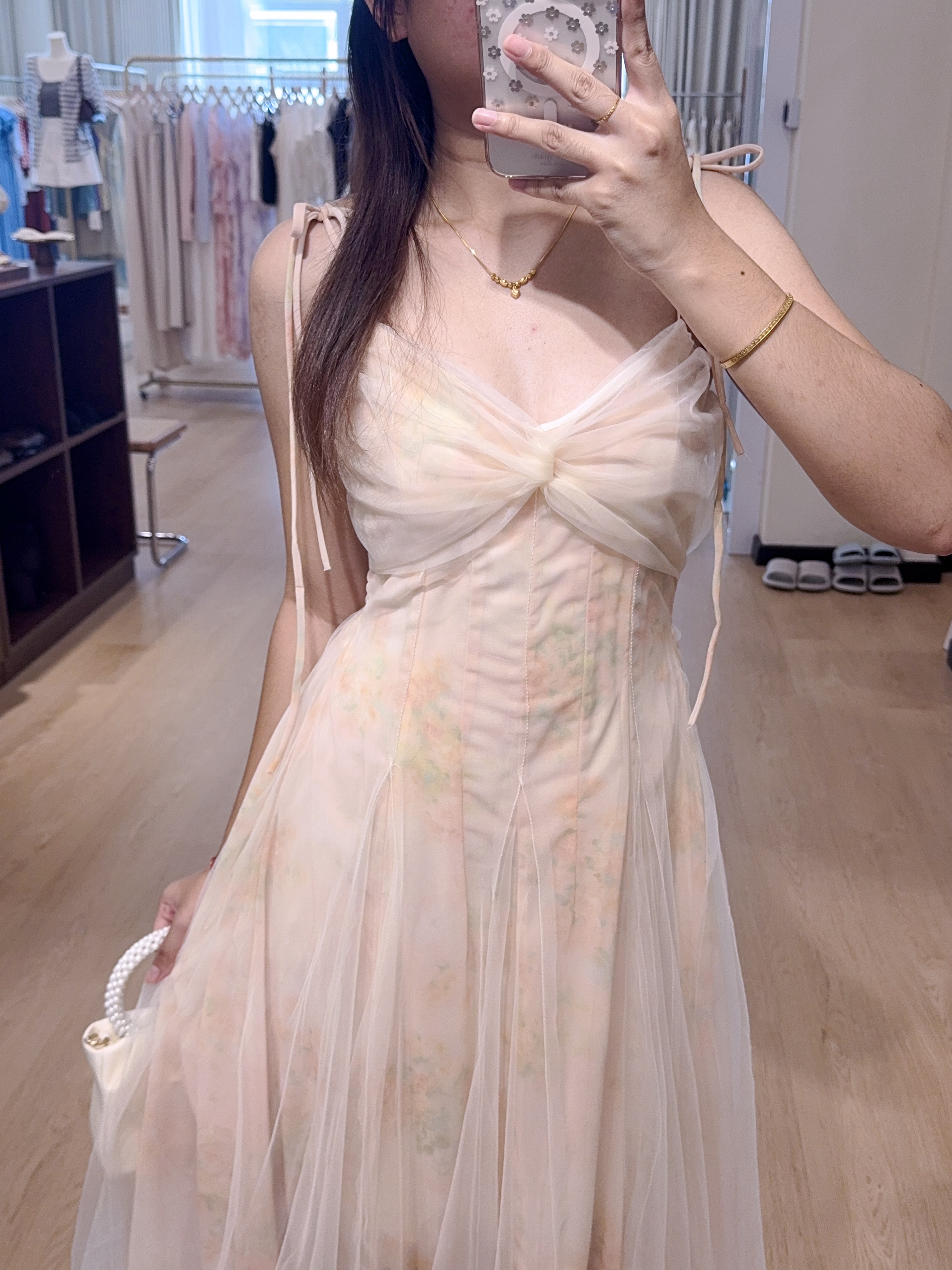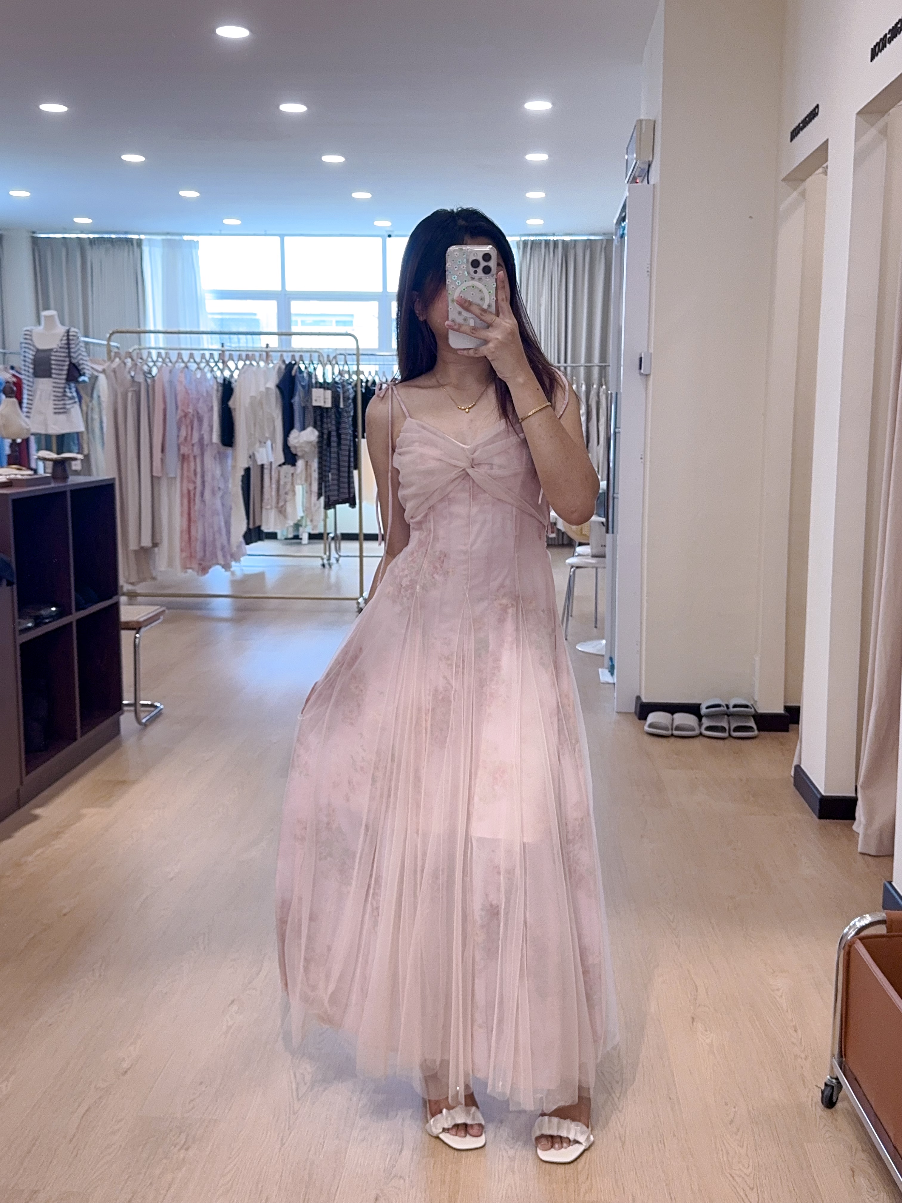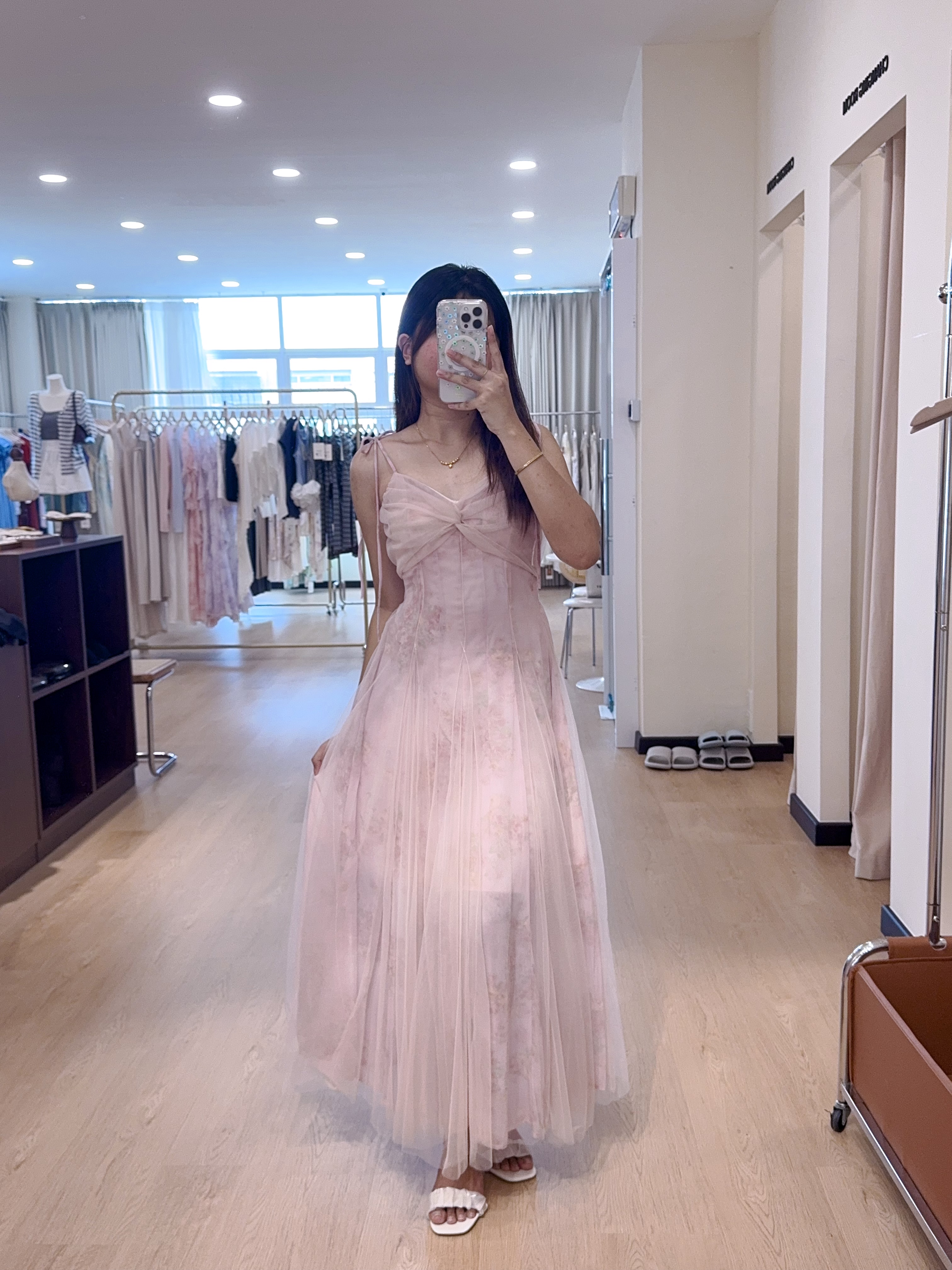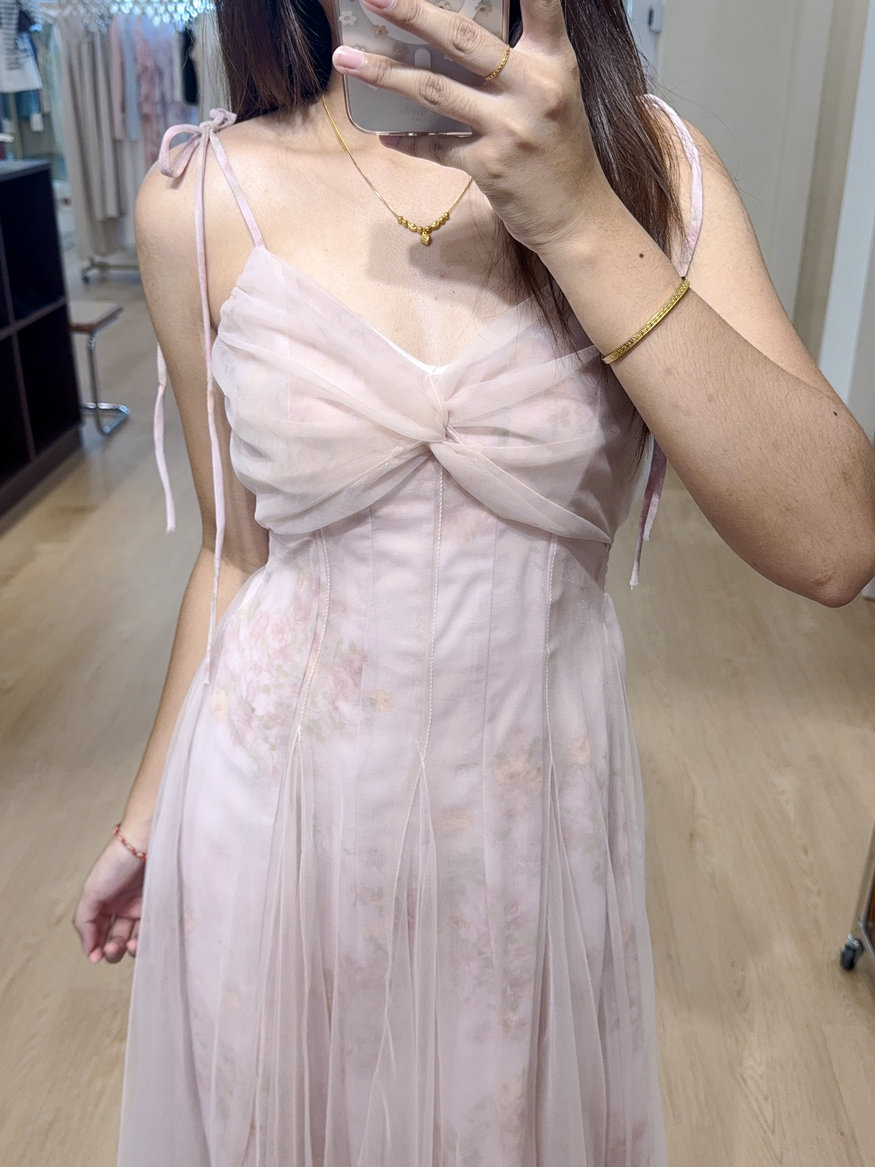 2079蕾丝碎花吊带长裙